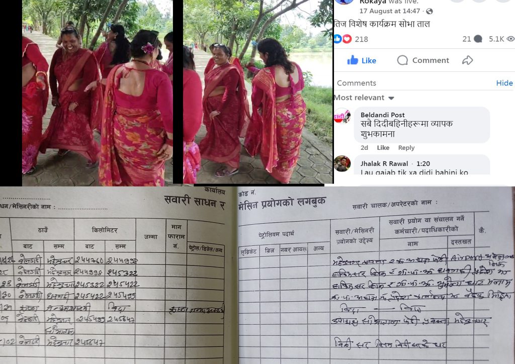 उपाध्यक्ष नाथले गाडी दुरुपयोग भएको भन्दै आरोप लगाएको दिनमै उनी आफैं सोही गाडी प्रयोग गर्दै शोभा तालको तीजको दर (पाटी) खाने कार्यक्रममा गाडी प्रयोग गरेर गएको प्रमाण फेला परेको छ । गाउँपालिका जनप्रतिनिधि र कर्मचारीसहितको टोली लिएर शोभा ताल पुगेकी उपाध्यक्ष नाथले गाडी दुरुपयोग भएको भन्नु र आफैं पाटीमा प्रयोग गर्नुमा दोहोरो चरित्र देखिएको जनप्रतिनिधिहरूको टिप्पणी छ ।