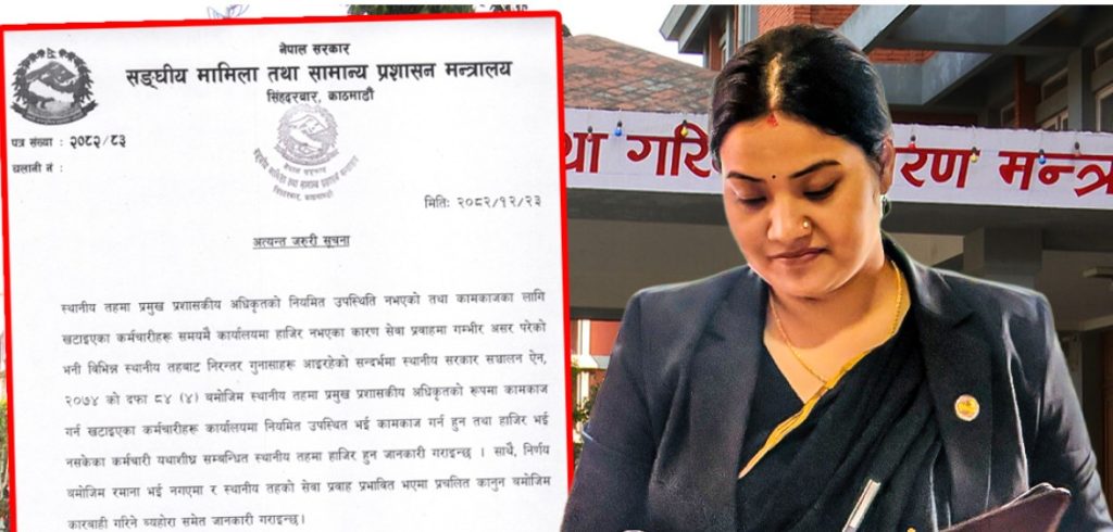 मन्त्रालयले सोमबार सूचना जारी गर्दै स्थानीय तहमा प्रमुख प्रशासकीय अधिकृत नियमित रूपमा उपस्थित नभएको, कर्मचारीहरू समयमै कार्यालयमा नआएको र यसले सेवा प्रवाहमा गम्भीर असर परेको उल्लेख गरेको छ।